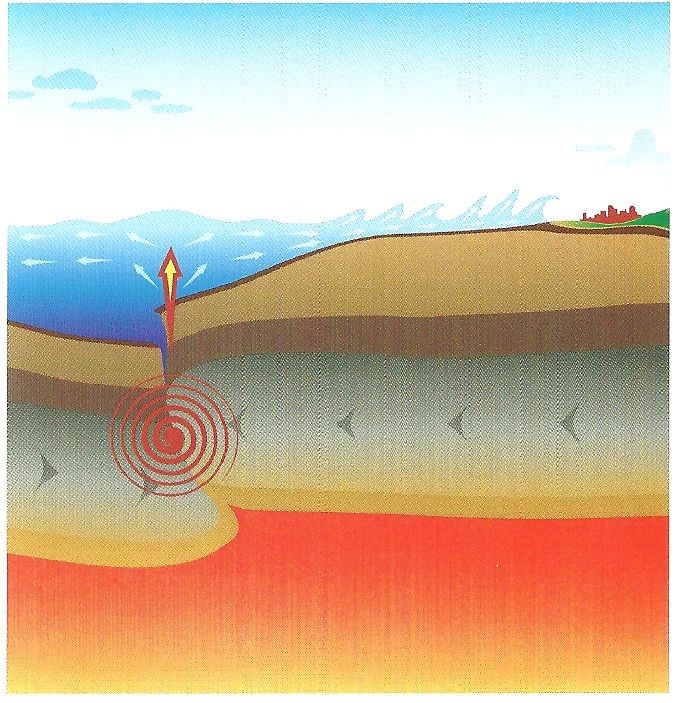 Os limites entre as placas tectônicas são zonas de ocorrência de terremotos. Nesses locais, as rochas estão submetidas a grandes forças que as comprimem ao longo do tempo, até o ponto em que, repentinamente, se partem, liberando grande quantidade de energia. Esta energia se propaga na forma de ondas pelas rochas ao redor até chegar à superfície. O foco ou hipocentro é o ponto no interior da Terra onde começa o terremoto. O epicentro é o ponto da superfície localizado diretamente sobre o foco. Quando um terremoto ocorre no fundo do oceano, as ondas de choque viajam pela água e podem gerar um tsunami.